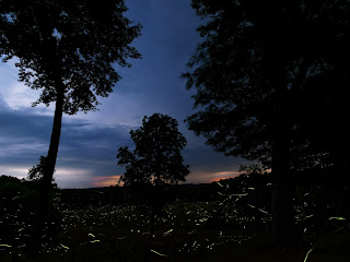 Fireflies like long grass so maybe they are out at the edges of the hay fields? That exposure was a LiveComposite of 2 minutes of catching changes of light.